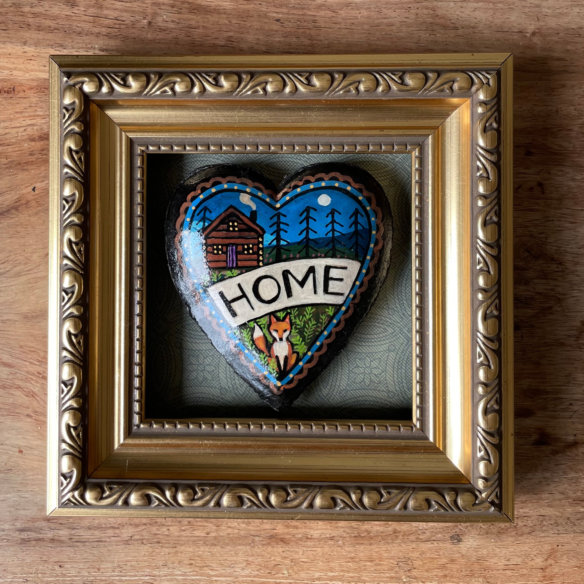 Hand painted heart in distressed gilt frame