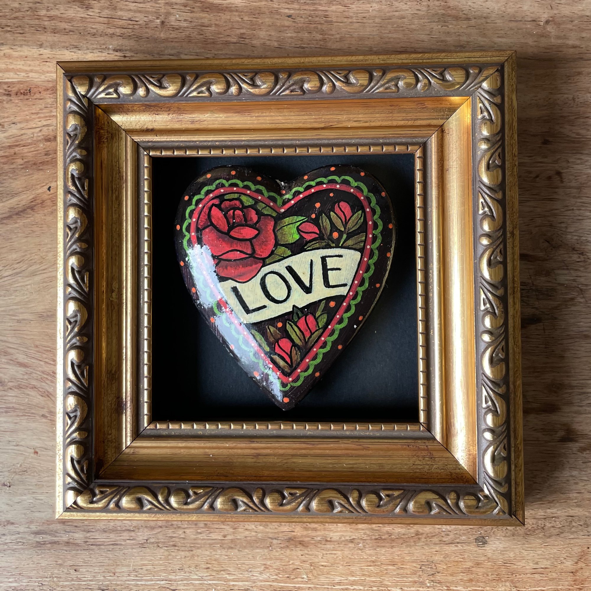 Hand painted heart set into a distressed gilt frame